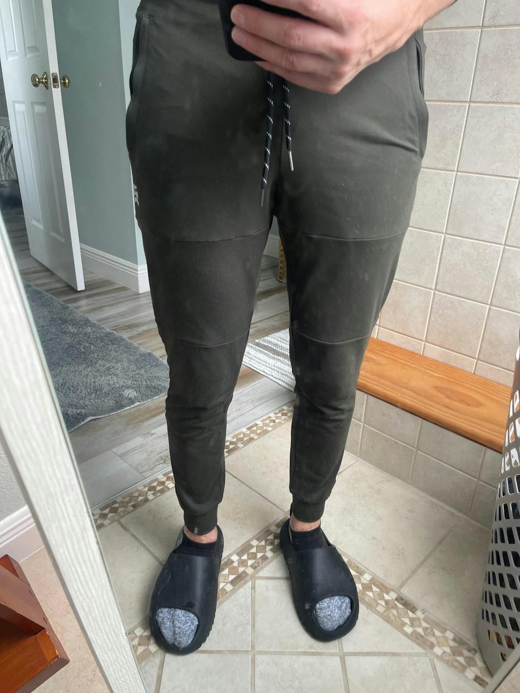 These joggers are nice. I love the material. I have it a 3 star cause I wish they fit a little better. Other than that, they’re a nice jogger overall